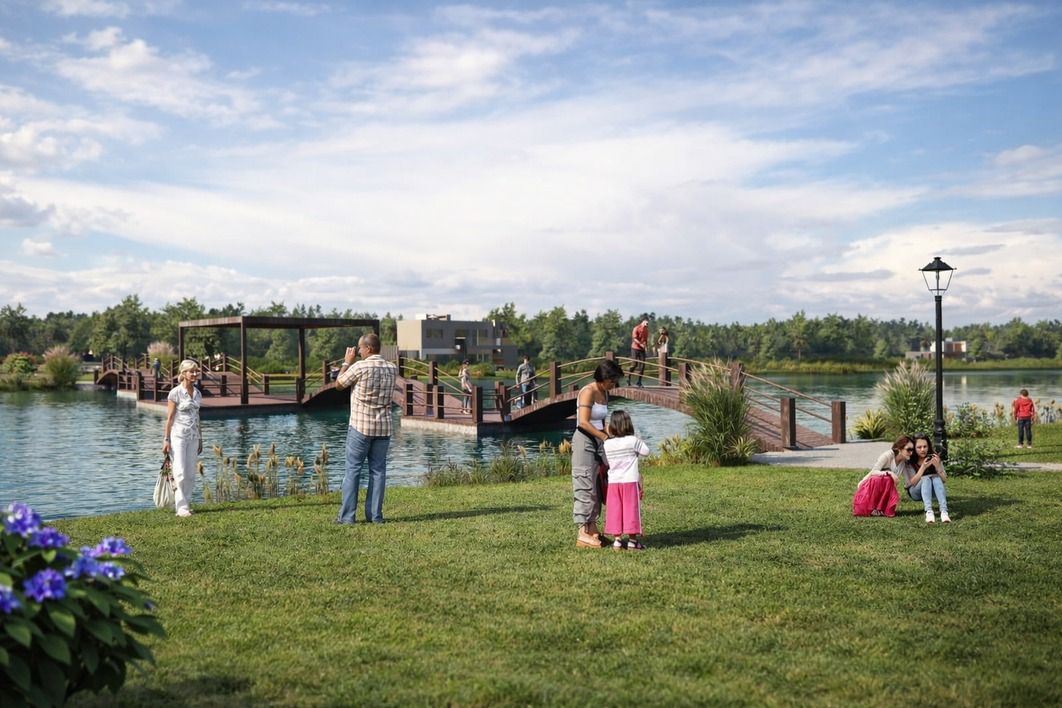 Lagunas: El barrio cuenta con 5 lagunas; 2 de acceso, donde se priorizará el embellecimiento a través del llamado natural a colibries nativos de la zona, 1 de acceso recreativo ornamentada de manera caribeña y otras 2 deportivas de 9 HA respectivamente para prácticas deportivas.